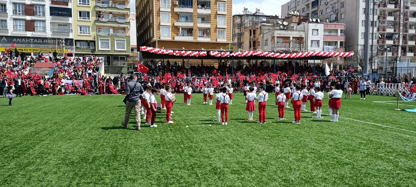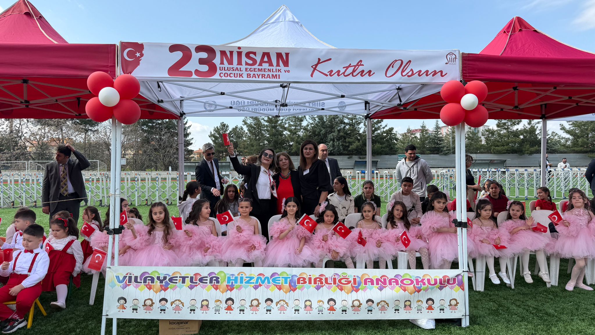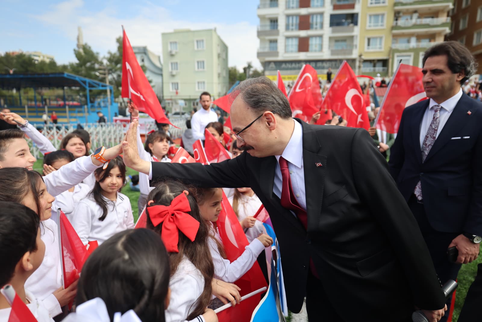23 Nisan Ulusal Egemenlik ve Çocuk Bayramı kutlamaları, sabah Cumhuriyet Meydanı’nda Atatürk Anıtı’na çelenk konulması, saygı duruşu ve İstiklal Marşı’nın okunmasıyla başladı. Törenler, ‘2 Nolu Sentetik Çim Saha’da gerçekleştirilen çeşitli etkinliklerle devam etti.