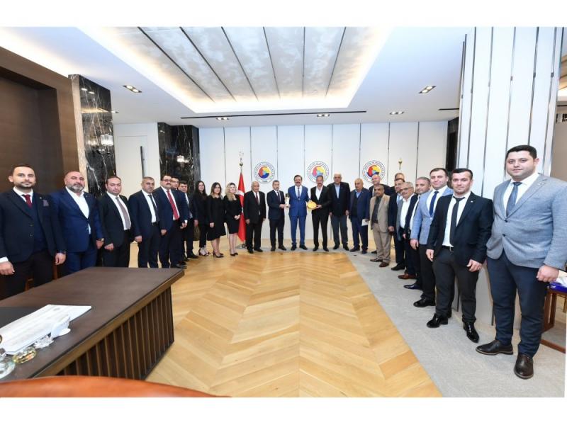 Siirt Ticaret ve Sanayi Odası Yönetim Kurulu Başkanı Güven Kuzu, beraberindeki heyet ile birlikte Türkiye Odalar ve Borsalar Birliği (TOBB) Başkanı M. Rifat Hisarcıklıoğlu'nu makamında ziyaret etti. Siirt TSO Başkanı Güven Kuzu ile birlikte Meclis Üyeleri Fuat Özgür Çalapkulu, Abdulkadir Demirhan, Gazanfer Cezlan, Servet Ekinci, Doğan Evin, Yafez Turhan, Faruk Seven, Sıtkı Bülent Erten, Ömer Özer, Adil Uyanık, Faruk Seven,Bedia Elif Tren Özer, Mehdi Dalğalı, Meltem Gelgen, Kazım Yılmaz,Halit Aydar,Necati Sürme, Saydan İşıktaş,Sait Kesici,Abdullah Efe,Oda Disiplin Kurulu Başkanı Mehmet Ali Şengöz, Genel Sekreter Başar Taner, Derya Çengel Arpacı ve Zekeriya Kaan Özer eşlik etti. Kabulde TOBB Başkanı Hisarcıklıoğlu, Siirt TSO Başkanı Güven Kuzu'ya yeni dönem çalışmaları için başarılar dileyerek, hayırlı olsun dileklerini iletti. Yönetim Kurulu Başkanı Güven Kuzu, ziyaret sonrası yaptığı açıklamada şu görüşlere yer verdi: “4 Ekim itibariyle Siirt Ticaret ve Sanayi Odamızın seçimini gerçekleştirerek, 6.dönemde de üyelerimizin teveccühünü alarak, mevcut yönetim ve meclisimizle göreve talip olduk. Seçildik. Bize bu bağlamda destek olan üyelerimize çok teşekkür ederken yapılan seçimlerin ilimize ve ülkemize hayırlar getirmesini dilerim. Rifat Başkanımız gerek bizim gerek iş dünyamız için değerli bir büyüğümüzdür. İş dünyasının başında olması bizler için bir güven tesis etmektedir. Onun varlığını her zaman yanımızda hissettiğimiz için ekibimizle birlikte giderek, yeni katılan arkadaşlarımızı da kendisiyle tanıştırdık. Bundan sonra iş dünyasına yapacağımız hizmetleri birlikte devam etme arzumuzu, heyecanımızı belirtmek amacıyla geldik. Malum bizim seçimimiz bitse de diğer seçimler devam ediyor. Onların da illere ve ülkemize hayırlar getirmesini temenni ediyorum. Önümüzde Odalar ve Borsalar Birliği’nin bir Genel Kurulu var. Yıllardan beri gecesiyle gündüzüyle uğraş veren, iş dünyasının daha iyi yerlere gelebilmesi için gerek ulusal gerek uluslararası bazda gayret ve çaba içerisinde olan çok kıymetli Başkanımızın her daim yanında olduğumuzu, Türkiye Odalar ve Borsalar Birliği adaylığında da Siirt TSO olarak sonsuz destek vererek yanında olduğumuzu beyan etmek isterim” dedi. Ziyaret, TOBB Başkanı Rifat Hisarcıklıoğlu ile birlikte hatıra fotoğrafı çekilmesiyle sona erdi.
