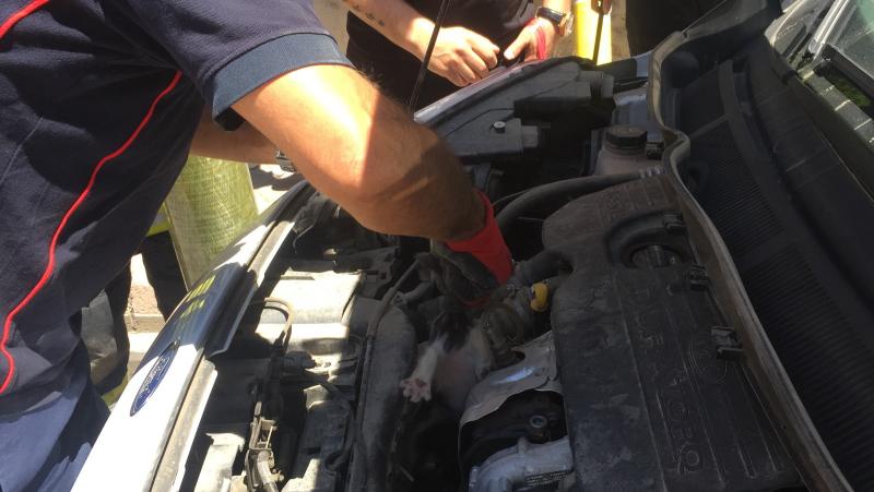 Siirt’e hafif ticari aracın motor kısmına sıkışan yavru kedi itfaiye ekiplerince kurtarıldı.