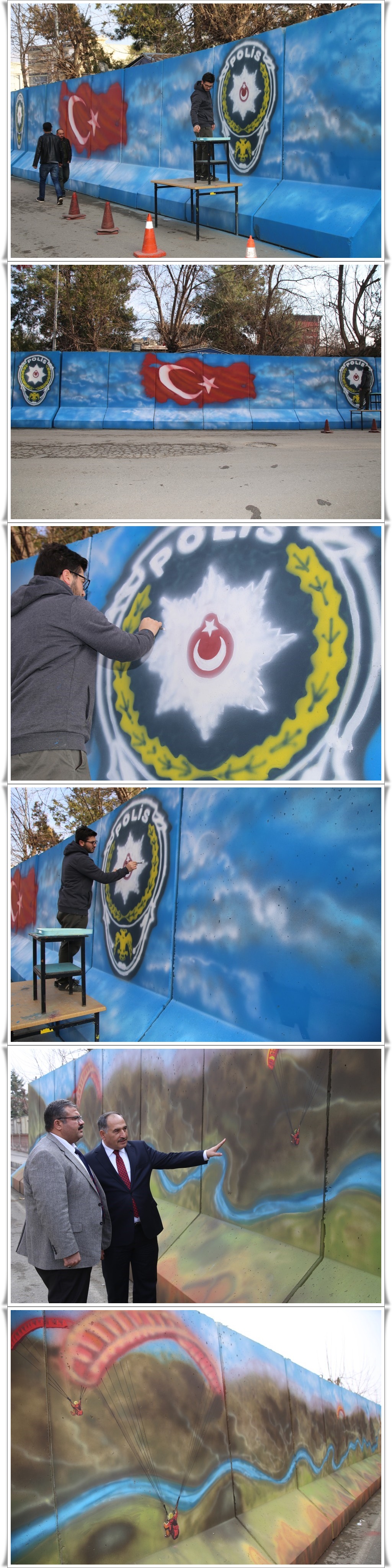 Belediye Başkan Vekili Ceyhun Dilşad Taşkın’ın talimatlarıyla başlatılan çalışmalar ile Siirt İl Emniyet Müdürlüğü tarafından olası saldırılara karşı tedbir amaçlı kurulan beton bariyerlere kentin doğa güzelliklerini anlatan resimler, Türk Polis Teşkilatı arması ve ay yıldızlı bayrak motifleri işleniyor.