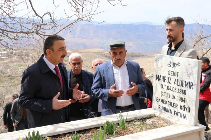 Ekmekçiler köyünde düzenlenen anma programının ardından Vali Hacıbektaşoğlu ve beraberindekiler Bayraktepe Köy şehitliğini ziyaret etti.