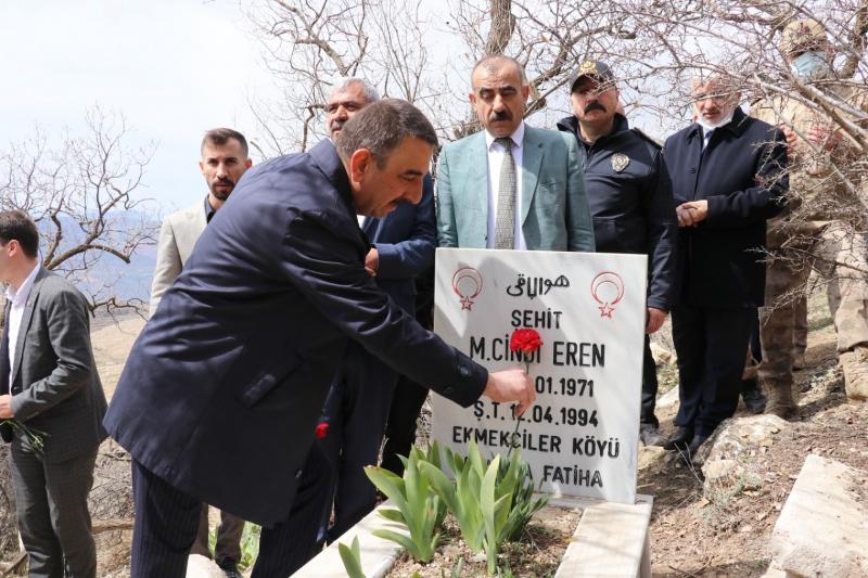 Siirt Valiliği himayelerinde Ekmekçiler Köy Şehitliğinde düzenlenen anma töreninde Kur’an-ı Kerim tilavet okundu, İl Müftüsü Vehap Kapıcıoğlu tarafından aziz şehitlerimiz için dua okundu.