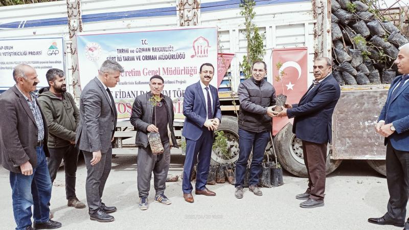 Eruh ilçesinde yapılan fidan dağıtım programına Eruh Kaymakamı Ömer Faruk ÖZDEMİR, Siirt Tarım ve Orman İl Müdürü Ergün DEMİRHAN, İlçe Müdürü Cumali NAS, Şube Müdürü Yunus EREN, Şube Müdürü Ercan KAPLAN, ilçe müdürlüğü teknik elemanları ve üreticiler katıldı.