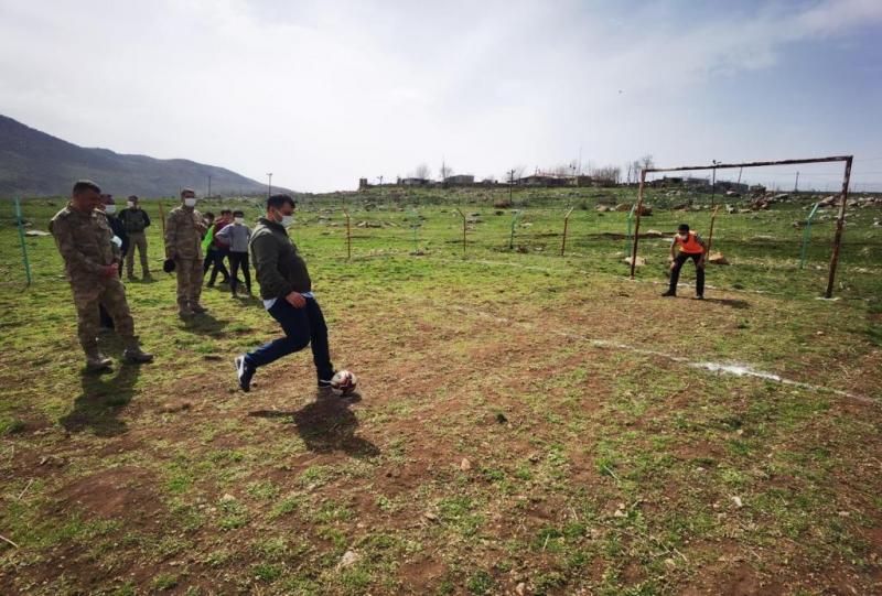 Köyün futbol sahasında gençlerinin futbol oynadığını gören Kayabaşı beraberindeki heyetle birlikte yanlarına gitti.Bir süre gençlerle sohbet eden Kaymakam Kayabaşı, daha sonra onlarla birlikte bir süre futbol oynadı.