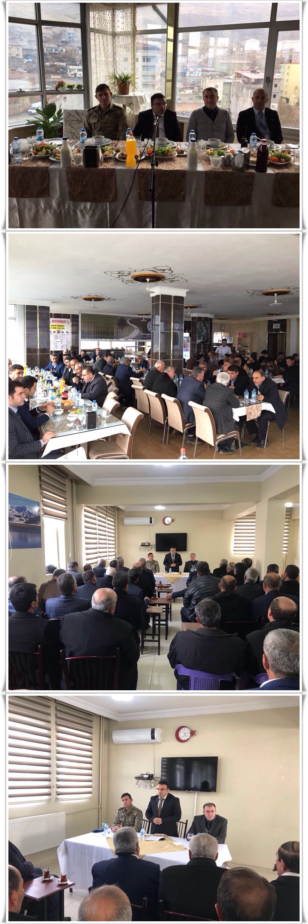 İlçe Merkezinde özel bir Otelin salonunda düzenlenen yemekli toplantıda, ilçe genelinde yapılan ve yapılacak olan yatırımlar, Köydes projelerinin yanı sıra asayiş ve güvenlik konuları görüşüldü.