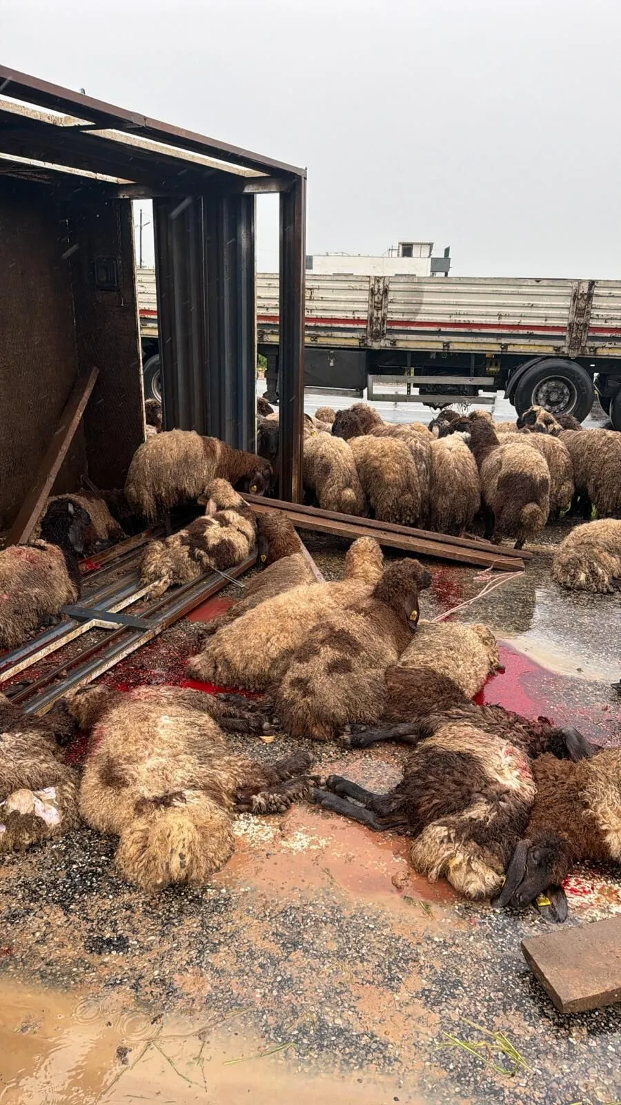 Meydana gelen kazada özel araçta bulunan 4 kişi ağır yaralanırken, koyun yüklü kamyonda taşınan hayvanların büyük bir kısmının telef olduğu öğrenildi.