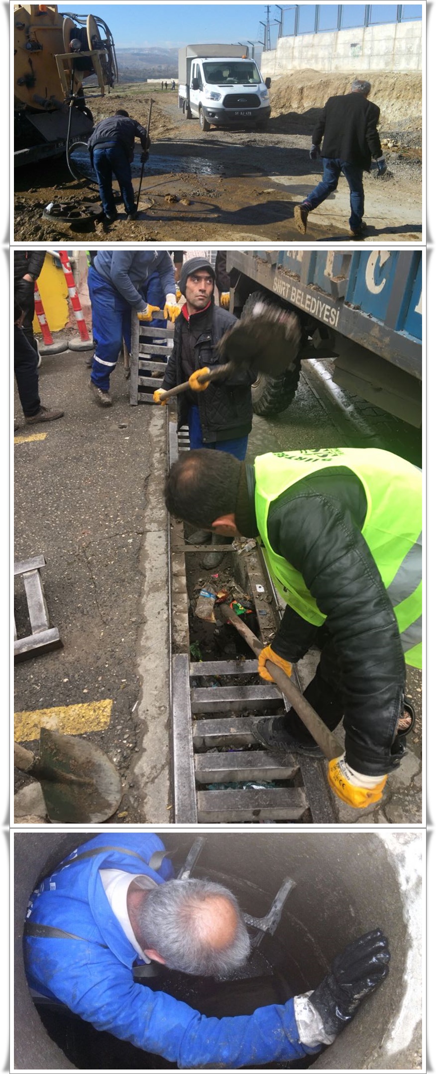 Siirt Belediyesi Su ve Kanalizasyon İşleri (SİSKİ) Müdürlüğüne bağlı ekipler tarafından cadde ve sokaklardaki yağmur suyu drenaj ızgaraları, mazgallar ve rögarların, temizleme çalışmaları, trafiğin yoğun olmadığı saatlerde gerçekleştiriliyor. İl sınırları içerisinde farklı bölgelerde çalışmalarına devam eden ekipler rögar temizliğini cadde ve sokaklarda sürdürürken diğer taraftan tahrip olan rögarları tamir ediyor. Rögarların içine pet şişe, ağaç parçaları, bina önüne getirilen tamir ve tadilat malzemelerinin atılmaması için vatandaşı uyaran SİSKİ yetkilileri birikmiş çöp ve pisliklerin tıkanıklık yaratmaması için çalışmalarına aralıksız devam ediyor.