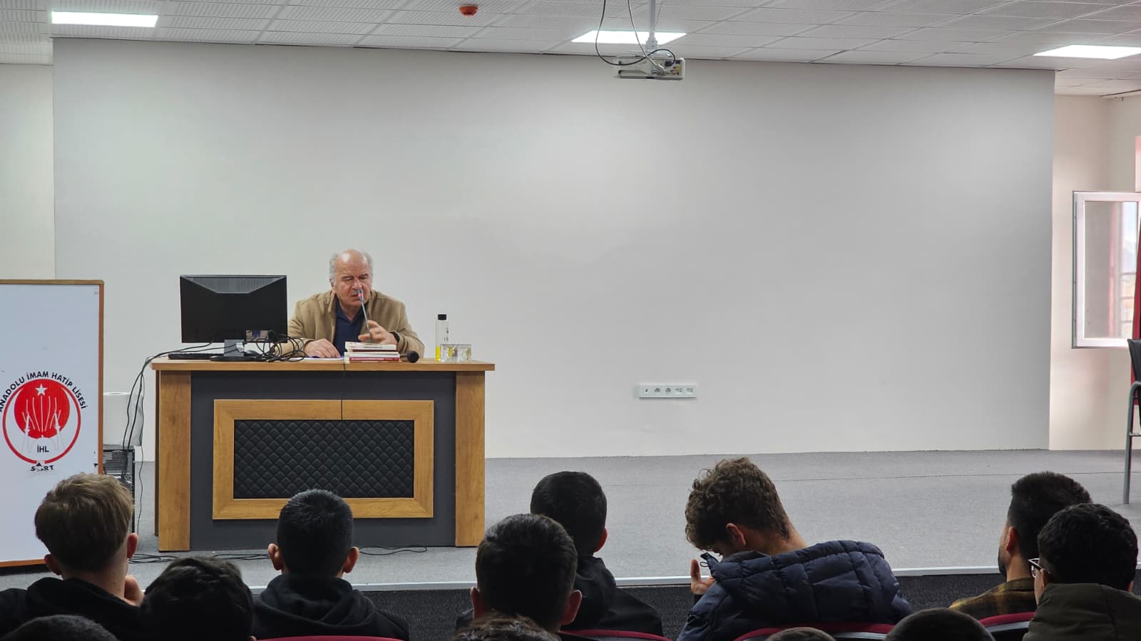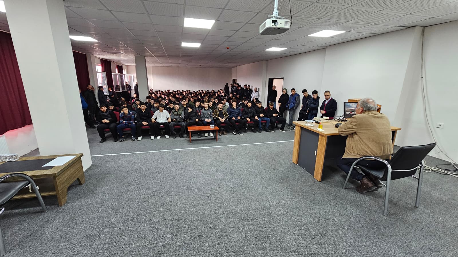 Söyleşiyi öğrencilerin yanı sıra okul yöneticileri de takip etti .