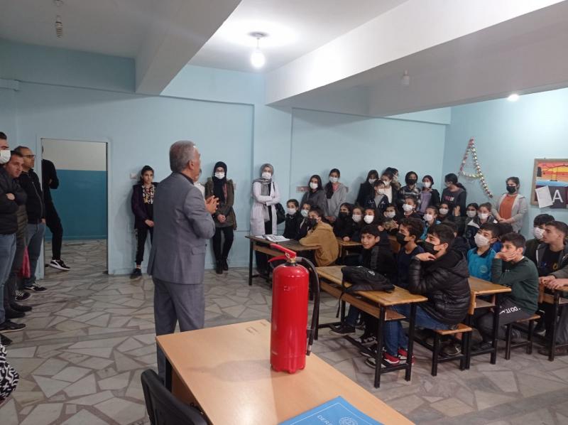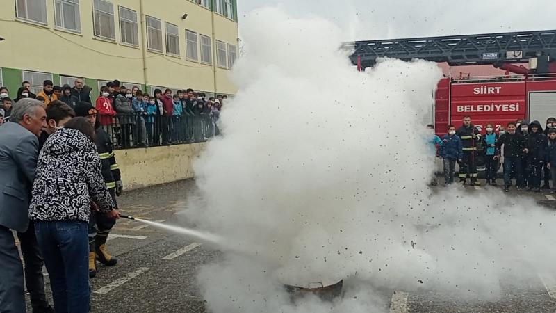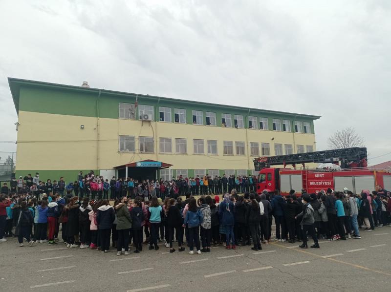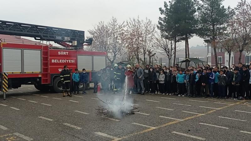 Barış Mahallesinde bulunan okulda Siirt Belediyesi İtfaiye Müdürlüğü ekipleri tarafından gerçekleştirilen yangın tatbikatının ardından İtfaiye Müdürü Mizbah Yılmaz tarafından yangınların çıkış nedenleri ve korunma yöntemleri konularında teorik bilgiler verildi ve öğrencilerin soruları cevaplandırıldı.