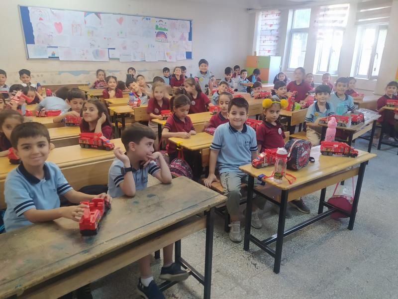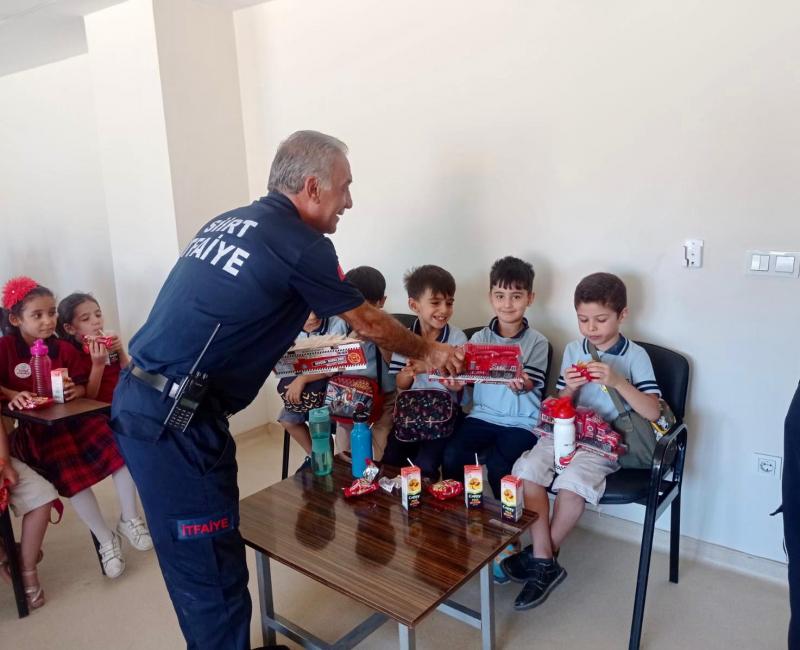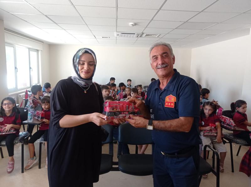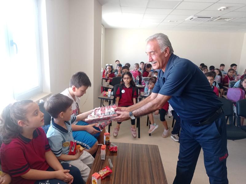 Daha sonra İtfaiye Müdürlüğü ekipleri öğrencilere çeşitli ikramlarda bulunarak, hediyeler verildi.