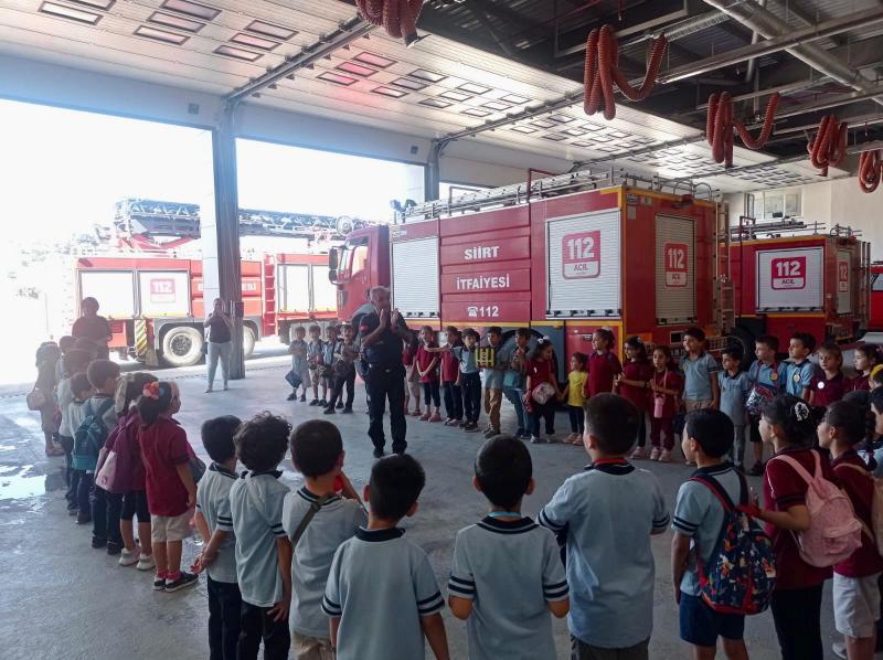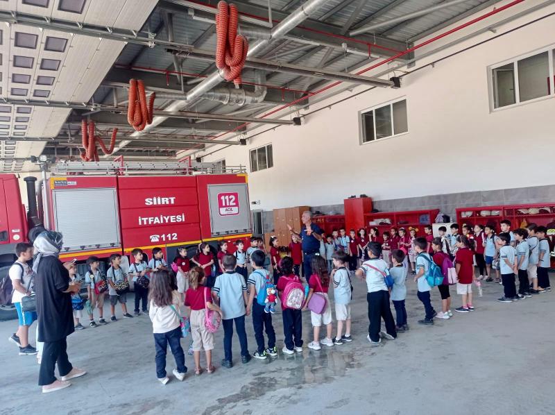 Yangın tatbikatına, Siirt Belediyesi İtfaiye Müdürü Misbah Yilmaz, itfaiye erleri ile okulun öğrenci ve öğretmenleri katıldı.