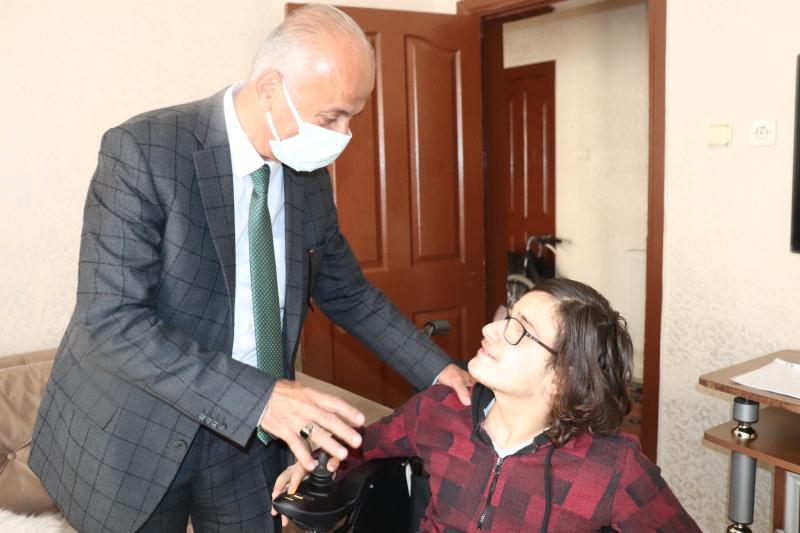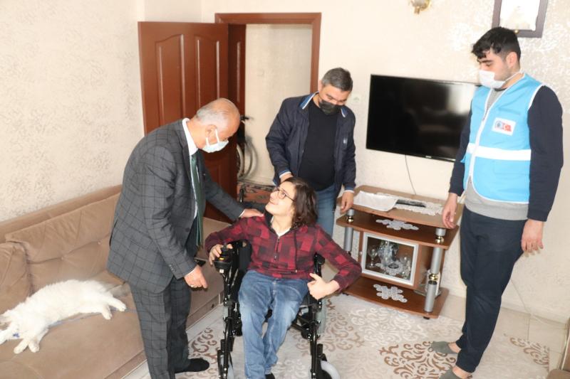 Erden, Vali ve Belediye Başkan vekili Hacıbektaşoğlu’nun selamlarını Özdeniz’e ileterek, akülü tekerlekli sandalyeyi hediye etti.