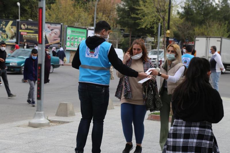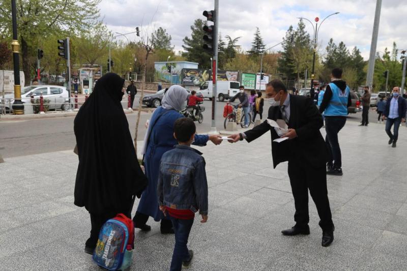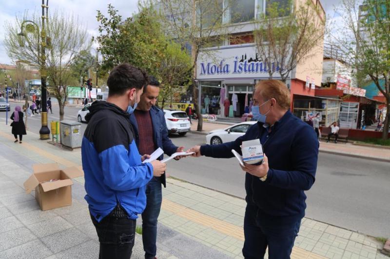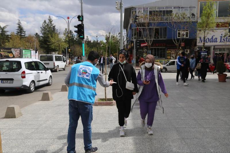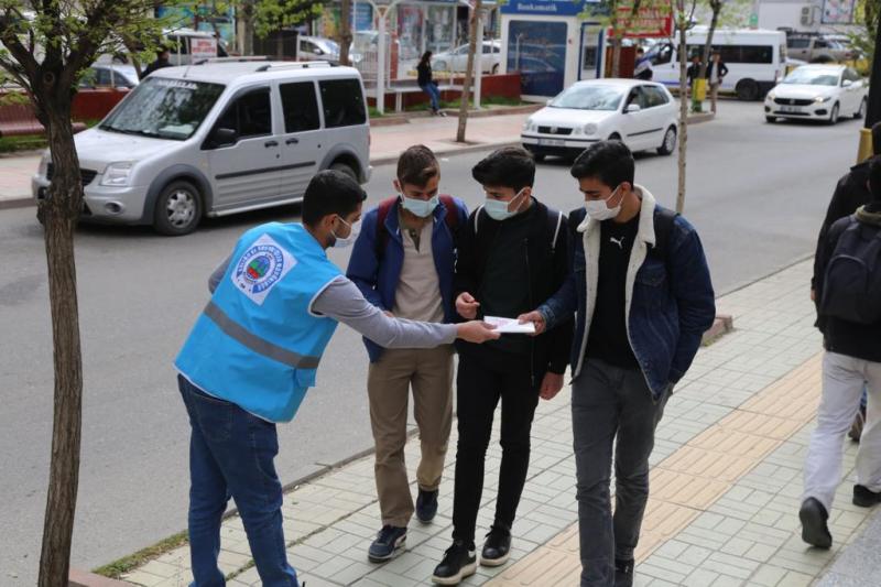 Siirt Belediyesi Kültür ve Sosyal İşleri Müdürlüğü ekipleri, Güres ve Hakkı Akyüz caddelerinde vatandaşlara maske dağıttı, sosyal mesafe ve hijyen uyarısı yaptı.