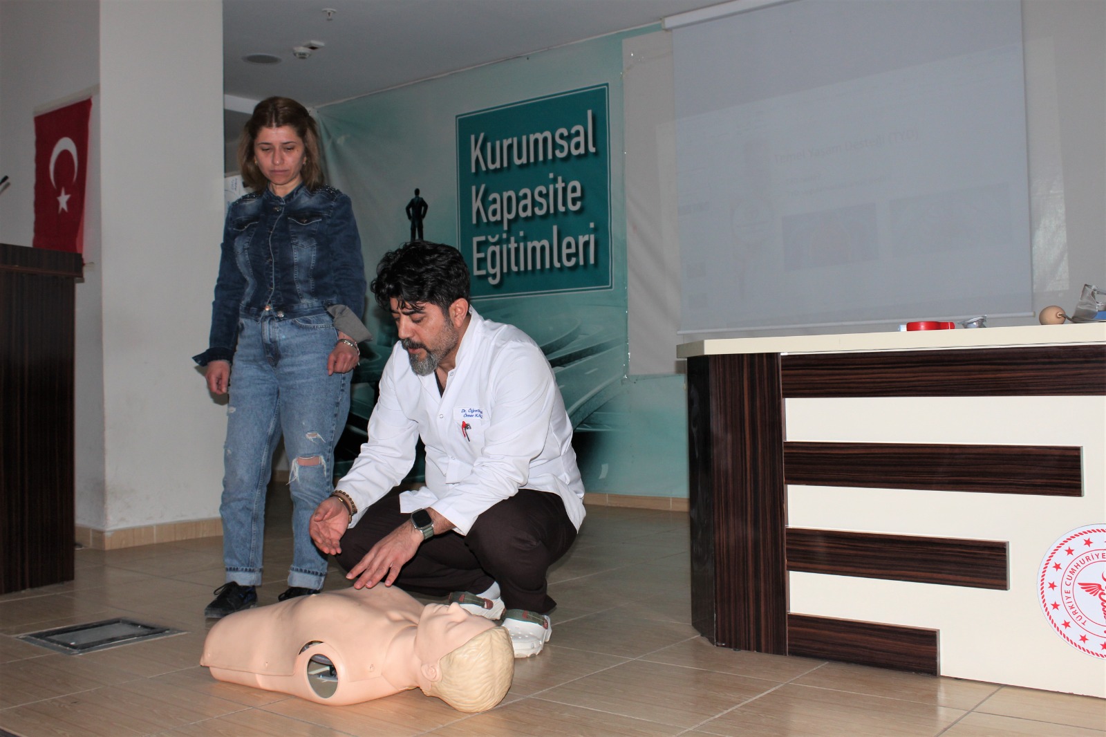 Eğitim kapsamında doğru müdahale teknikleri uygulamalı örneklerle detaylandırılarak, personelin acil durumlara hazırlık düzeyinin artırılması hedeflendi.