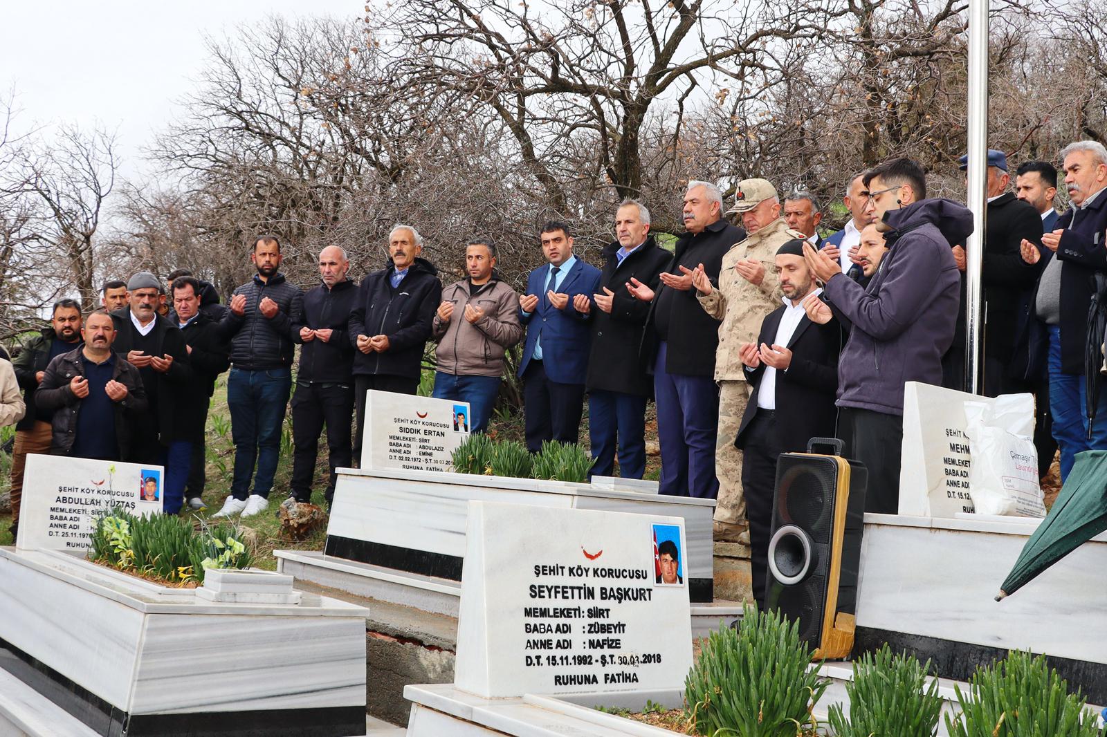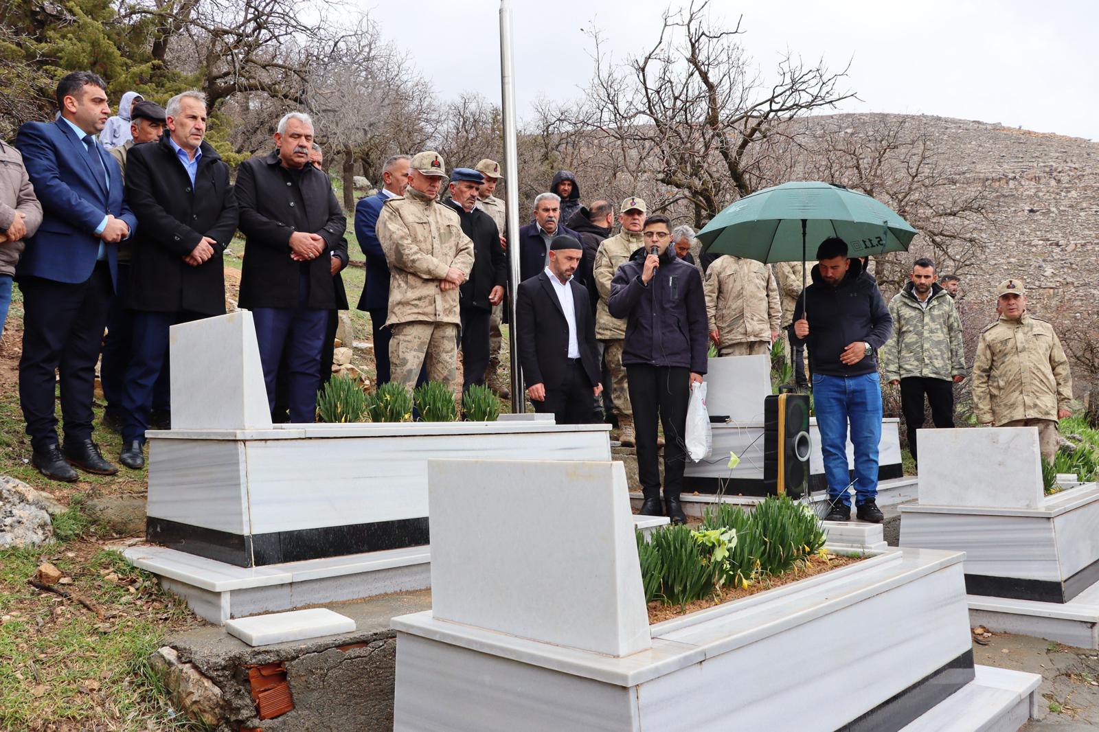 Köy Şehitliği’nde düzenlenen ilk törende Kur’an-ı Kerim tilaveti okundu. İl Müftü Yardımcısı İbrahim Ensari tarafından aziz şehitler için dua edildi.