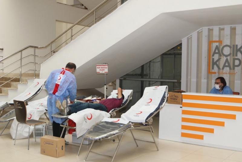 Covid-19 salgını dolayısıyla kan stoklarındaki ciddi azalma nedeniyle kana ihtiyacı bulunan hastaların sağlığına kavuşmalarına katkı sağlamak amacıyla, valilik giriş katında kurulan, geçici kan merkezinde, valilik personeli ile vatandaşlar, Kızılay görevlilerine kan vererek, kampanyaya destek oldu.