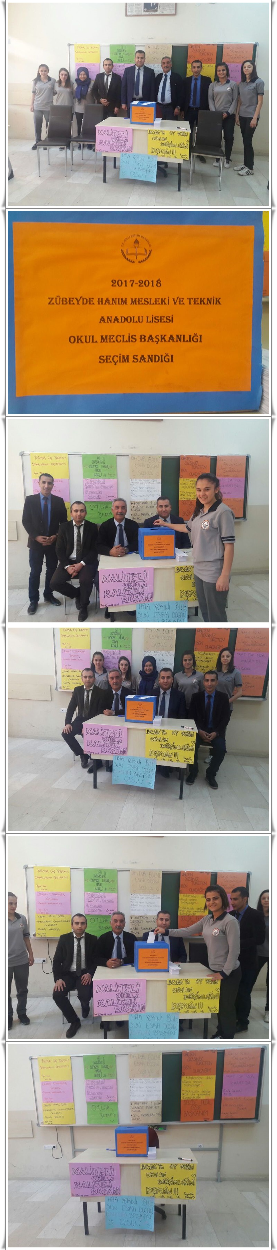 Siirt Zübeyde Hanım Mesleki ve Teknik Anadolu Lisesi rehberlik servisi tarafından düzenlenen Okul Meclisi Başkanlık seçimi için 7 aday yarıştı. Okulun salonlarına konulan sandıkların başında da görevli seçim kurulu görev yaptı.