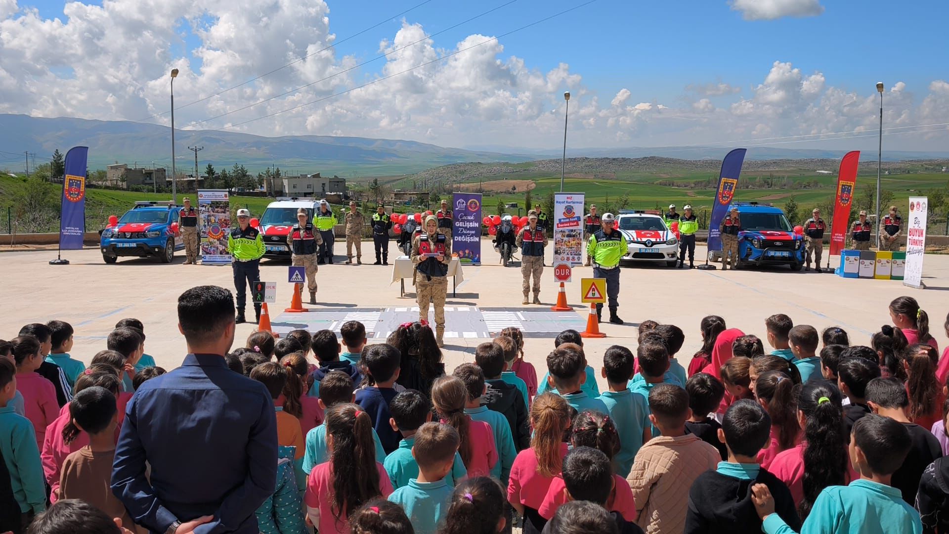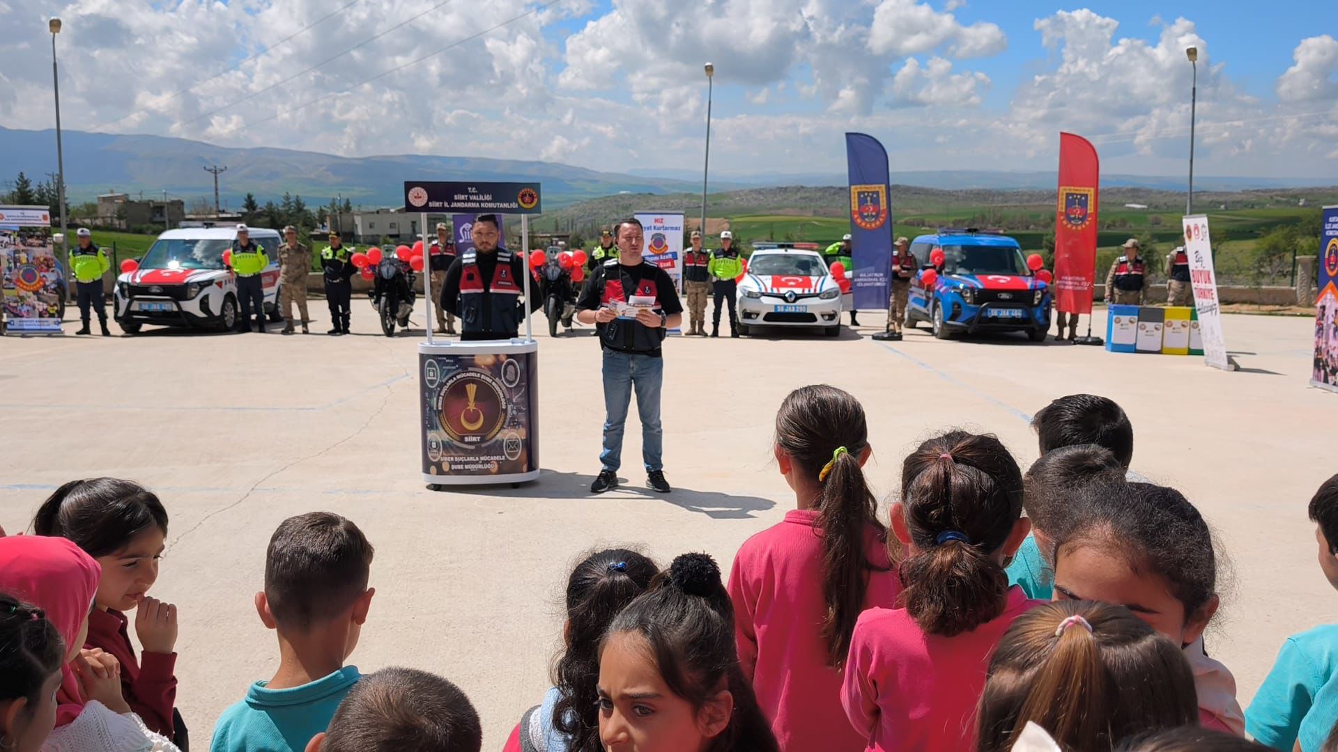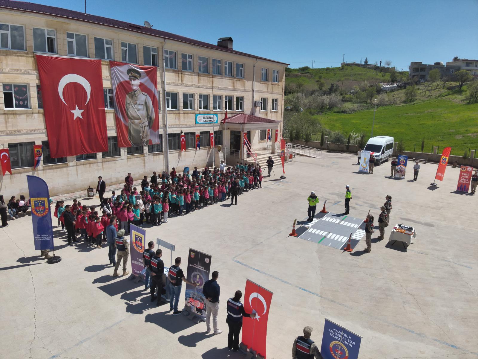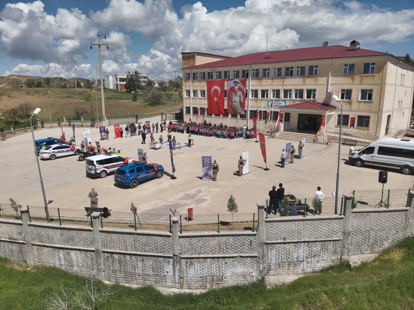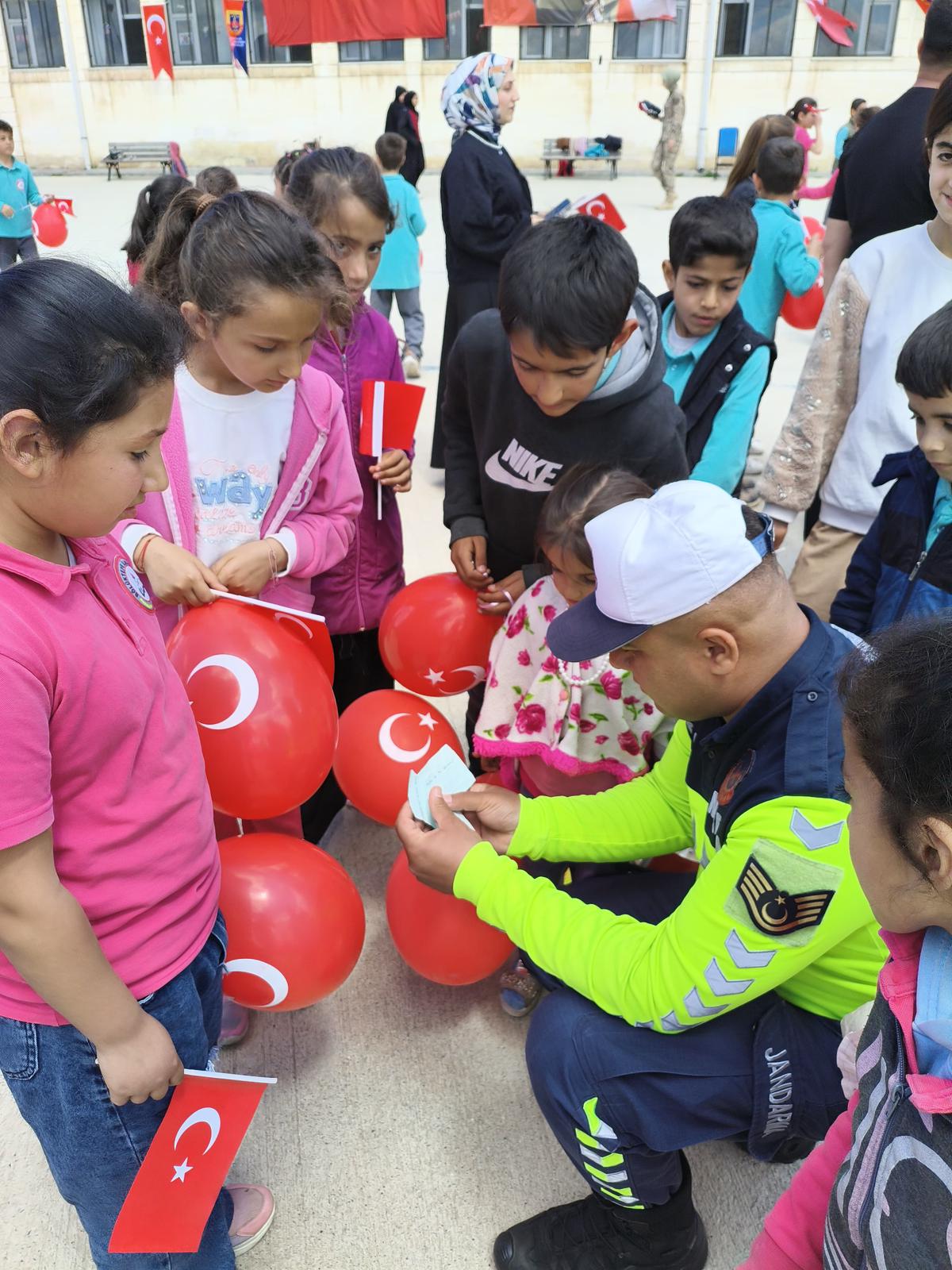 23 Nisan Ulusal Egemenlik ve Çocuk Bayramı kapsamında gerçekleştirilen programda, İl Jandarma Komutanlığı Aile İçi Şiddetle Mücadele ve Çocuk Kısım Amirliği ile İl Milli Eğitim Müdürlüğü Rehberlik ve Araştırma Merkezi uzmanlarınca öğrencilere akran zorbalığı, siber tehditler, çevre bilinci, trafik kuralları ve bayrak sevgisi konularında eğitim verildi.