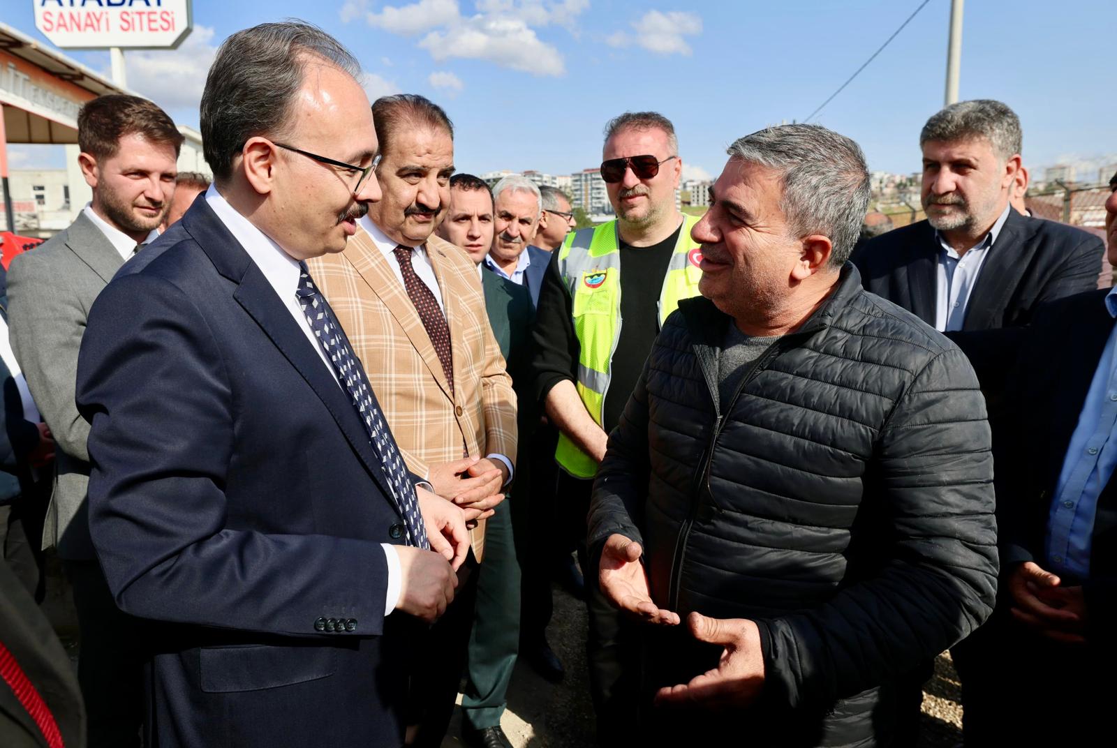 Vali Kızılkaya, daha sonra asfalt çalışmalarını yerinde inceleyerek, sanayi esnafı ile de sohbet etti.