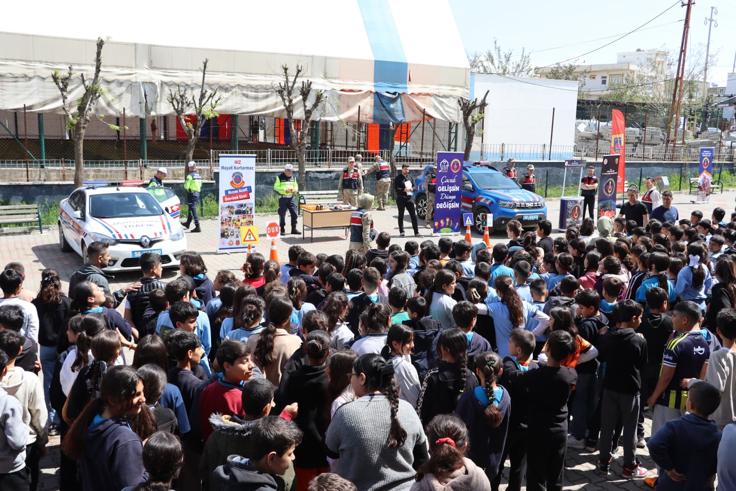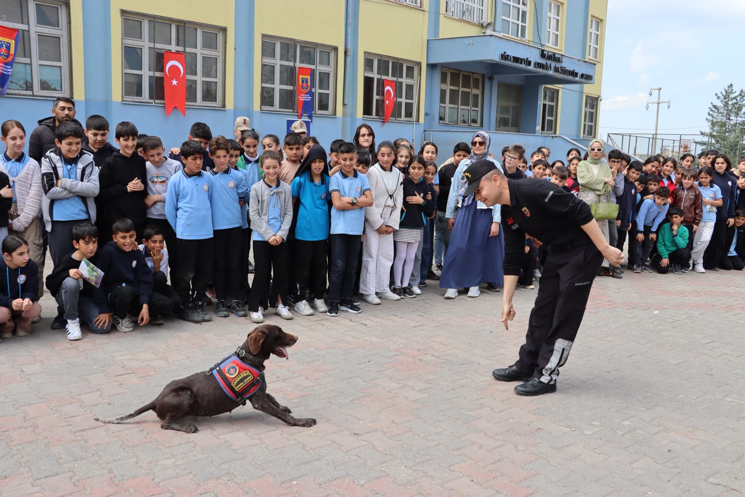 Programın sonunda İl Jandarma Komutanlığı bünyesinde bulunan “Sınav”, “Yapı” ve “Mantık” isimli görev köpeklerinin gerçekleştirdiği akrobasi gösterileri öğrenciler tarafından ilgiyle izlendi.