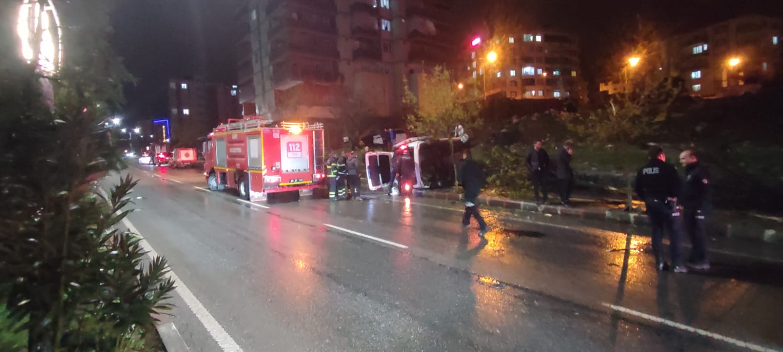 Kontrolden çıkan araç kaldırıma çıkarak yol kenarındaki ağaca çarptıktan sonra yan yattı. Kaza sırasında araçta bulunan 3 kişi hafif şekilde yaralandı.