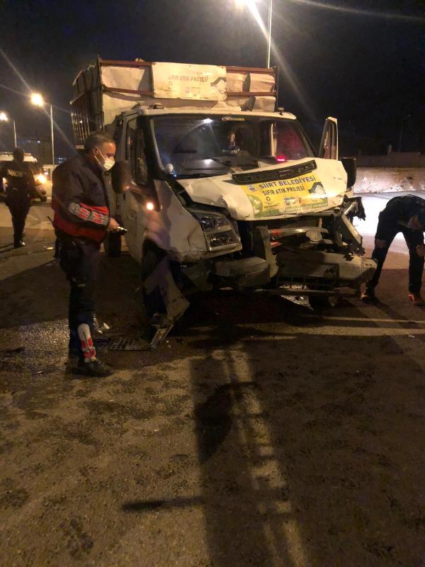 Kent merkezinde seyir halinde olan Siirt Belediyesi ine ait sıfır atık projesinde kullanılan 56 AB 776 plakalı transit ile 56 AAE 752 plakalı otomobil kafa kafaya çarpıştı. Kazayı gören vatandaşların 112 Acil Çağrı Merkezini araması sonucu kaza yerine çok sayıda ambulans, polis ve itfaiye ekipleri sevk edildi. İtfaiye ve sağlık ekipleri yaralıları kurtarmak için mücadele etti. Araç içinde sıkışan yaralıları çıkarmak için ekipler seferber oldu.