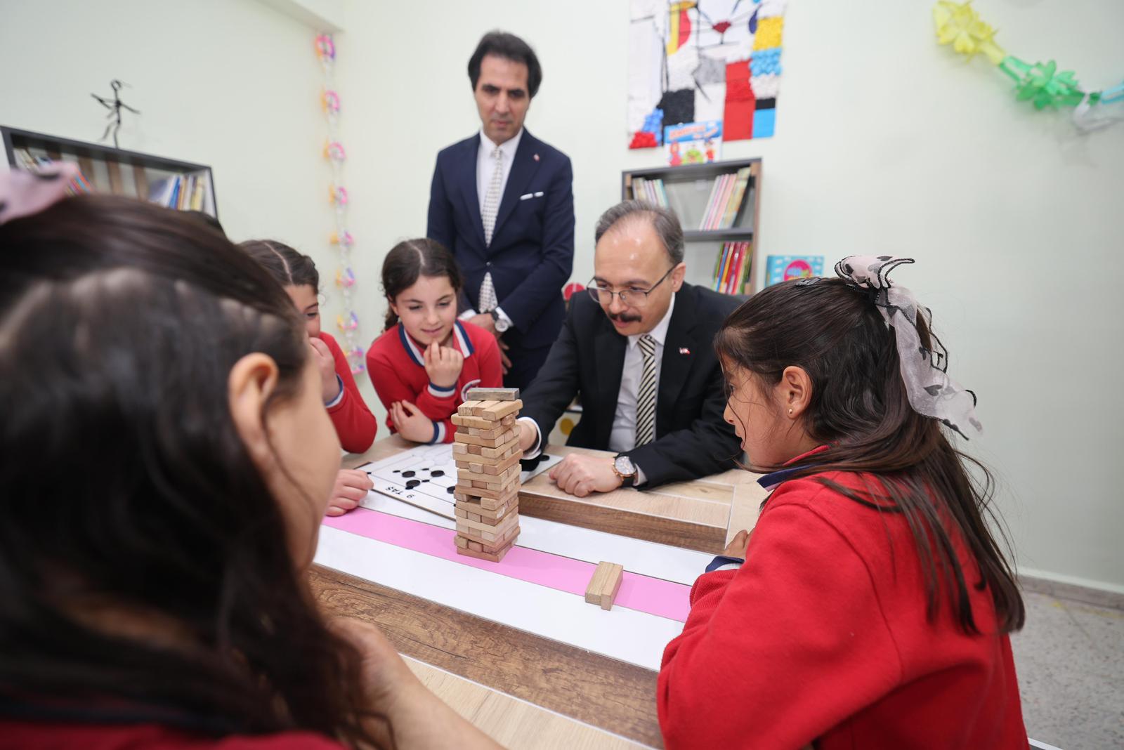 Vali Kızılkaya ve eşi Nurten Kızılkaya, açılışın ardından kütüphaneleri gezerek incelemelerde bulundu, öğrencilerle sohbet etti.
