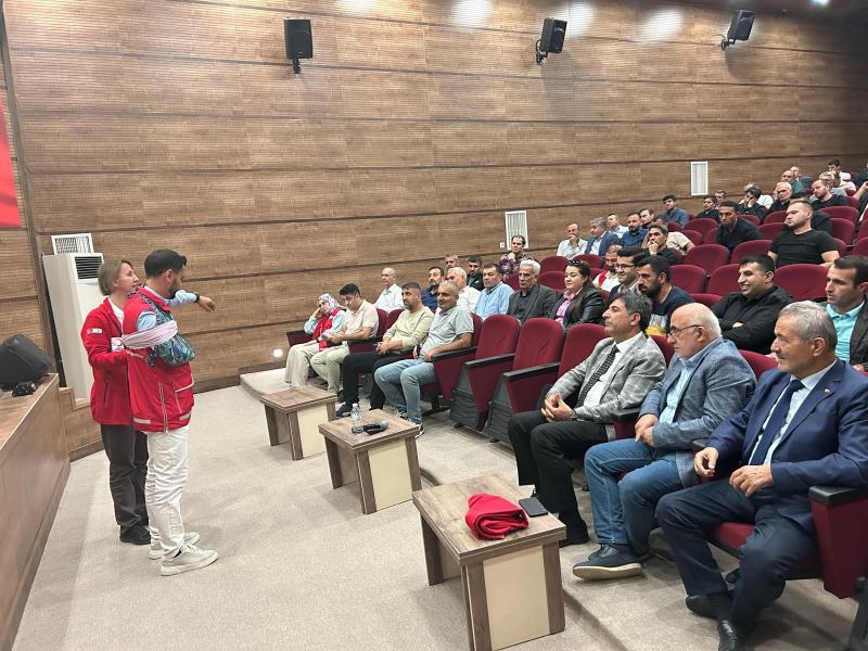 Eğitim sonunda katılımcılara ilk yardım broşürleri dağıtıldı ve uygulamalı örneklerle temel ilk yardım teknikleri gösterildi.