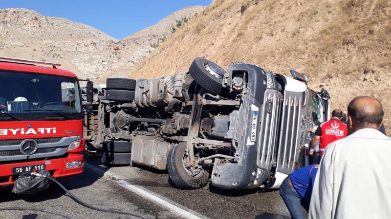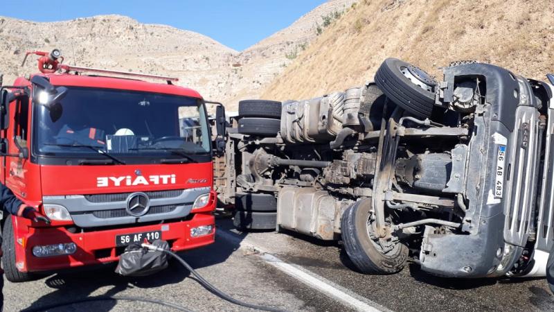 Edinilen bilgiye göre, Siirt Eruh karayolu Botan Köprüsü mevkiinde 56 AB 483 plakalı kamyon, sürücüsünün direksiyon hakimiyetini kaybetmesi sonucu devrildi.