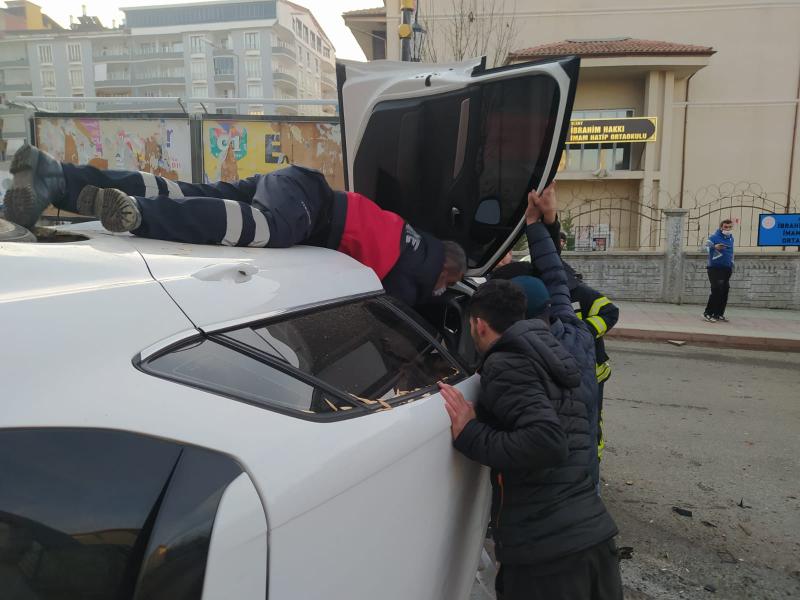 Araç içerisinde sıkışan yaralılar itfaiye ekiplerinin çalışmaları sonucu bulundukları yerden çıkarıldı.