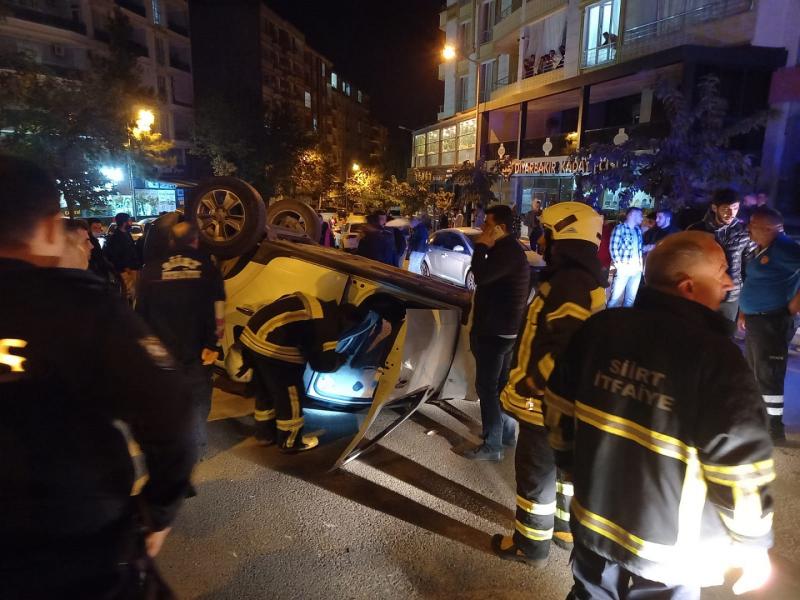 Edinilen bilgiye göre, Siirt Eğitim ve Araştırma Hastanesi caddesinde 21 B 911 plakalı otomobil, sürücüsünün direksiyon hakimiyetini kaybetmesi sonucu park halindeki 16 SEF 46 plakalı araca çarparak takla attı.