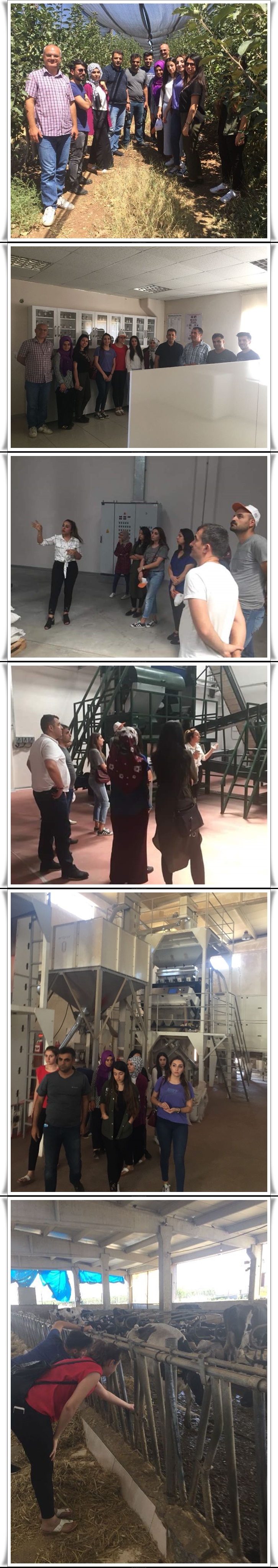 Düzenlenen geziye, Siirt Tarım ve Orman İl Müdürlüğü Koordinasyon ve Tarımsal Veriler Şube Müdürü Mehmet Seven, Bitkisel Üretim ve Bitki Sağlığı Şube Müdürü Adnan Kazak, teknik personel ve stajyer öğrenciler katıldı. Siirt Organize Sanayi Bölgesinde bulunan Siirt Entegre Fıstık İşleme Tesisi, Kurtalan İlçesi Gökdoğan Köyünde bulunan Bodur Elma, Kayısı, Armut ve Böğürtlen bahçeleri, sebze seraları ve Süt Sığırı hayvan çiftliği ile yine Kurtalan İlçe merkezinde bulunan Dayanlar Tohumculuk firmasına ait laboratuvar, eleme, paketleme ve diğer birimlerden oluşan tesisler gezdirilerek teknik elemanlar tarafından stajer öğrencilere bilgiler verilmiştir.