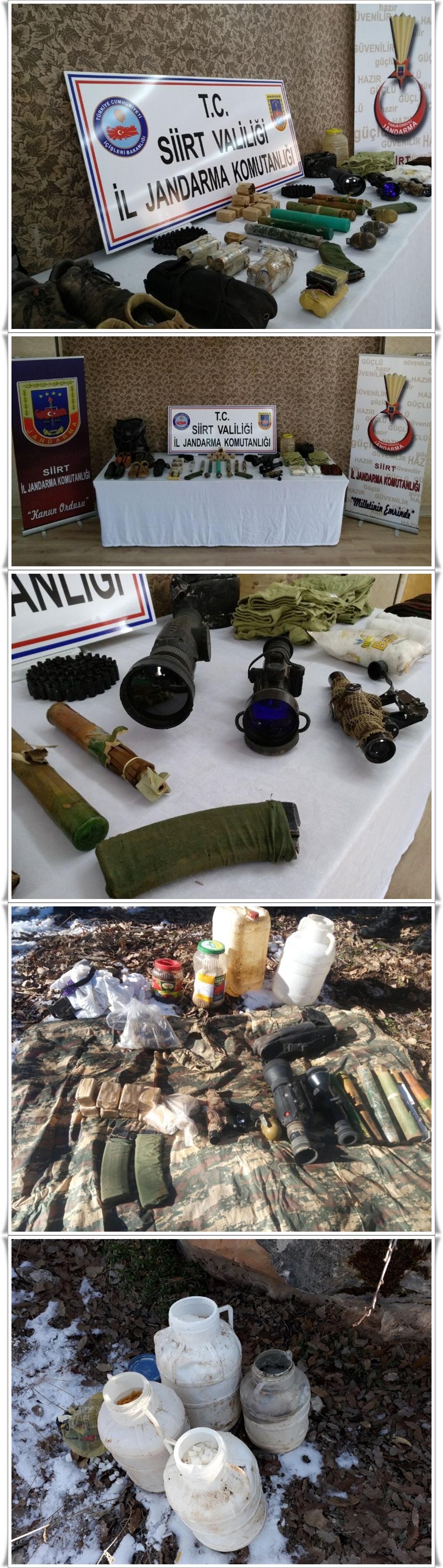 07-10 Ocak 2018 tarihleri arasında Siirt il Jandarma Komutanlığı sorumluluk sahasında bulunan Akmeşe (Garisa) bölgesini kış üstlenmesi maksadı ile kullanmak isteyen Bölücü Terör Örgütü (BTÖ) mensupları etkisiz hale getirmek, sığınak ve barınaklarını imha etmek maksadıyla, Jandarma Özel Hareket (JÖH) Birlikleri, Jandarma Asayiş Komando Birlikleri ve Güvenlik Korucularının katılımı ile icra edilen “Şehit J. Uzm. Çvş. Yunus EMRE – 2018 /01 operasyonu” kapsamında yapılan arazi araması esnasında bulunan (8) ayrı sığınak ve barınakta bölücü terör örgütü mensuplarına ait;