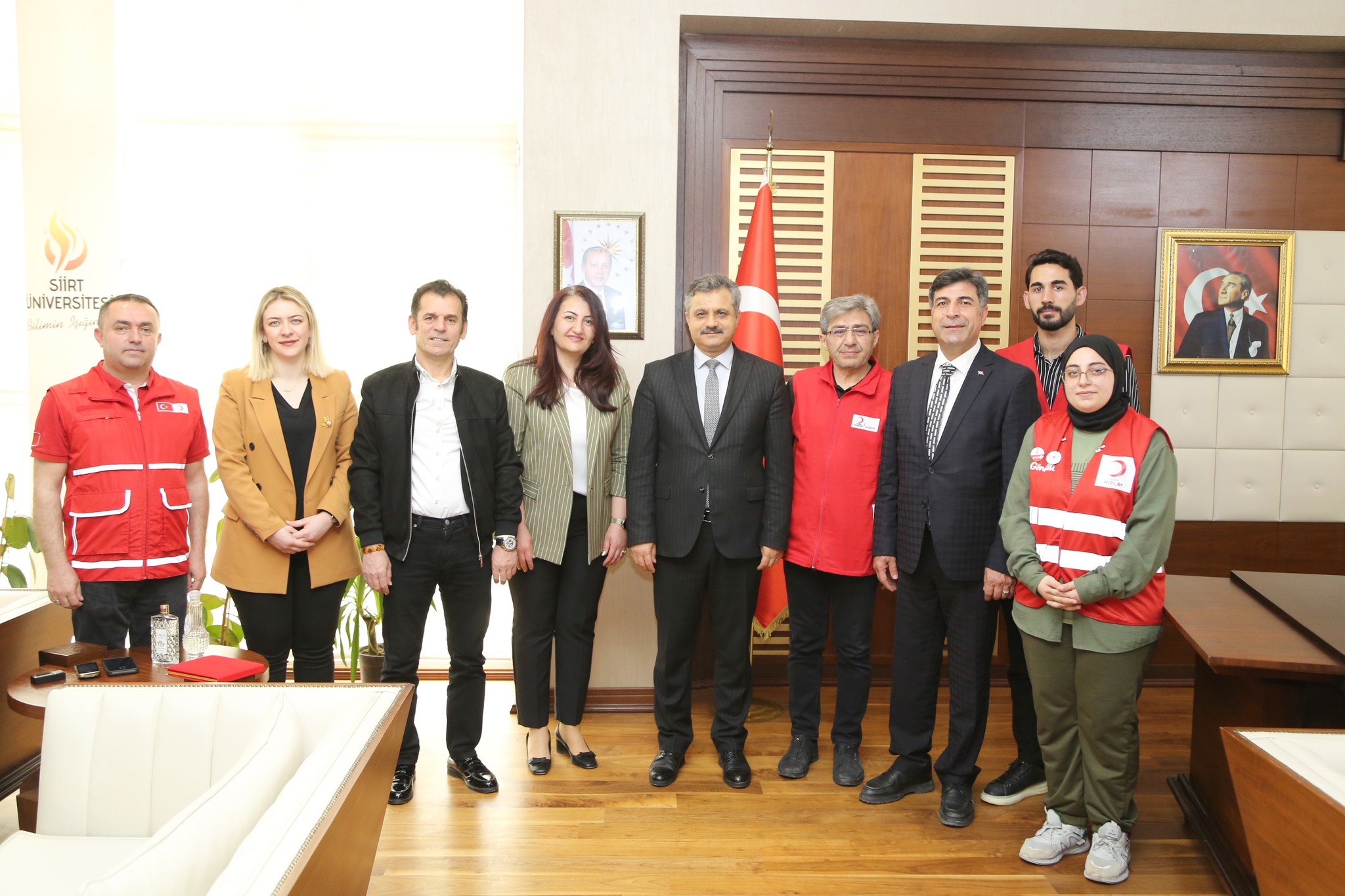 Rektörlük makamında gerçekleştirilen ziyarette sosyal sorumluluk projeleri, gönüllülük faaliyetleri ve Üniversitemiz ile Türk Kızılay'ı arasında yürütülebilecek iş birliği olanakları gibi konular değerlendirildi.