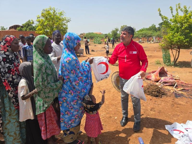 Türk Kızılay’ı 2025 yılı kurban organizasyonu kapsamında 28 ülkede kurban kesim ve dağıtım faaliyetlerini sürdürüyor. Bu kapsamda Türk Kızılay Genel Merkezi adına Burkina Faso’ya giden Kızılay Yönetim Kurulu Üyesi hemşehrimiz Yener Tanık, bölgede kurban kesimi ve ihtiyaç sahiplerine dağıtım çalışmalarına katıldı. Yener Tanık yaptığı açıklamada, “Merhamet elleriyle halkımızdan almış olduğumuz kurban vekaletlerini hem yurt içinde hem de yurt dışında yerine getiriyoruz. Ben de bu vesileyle mazlum coğrafyalardan biri olan Burkina Faso’ya geldim. Sekiz kişilik heyetimizle birlikte kurbanlıklarımızı özenle seçtik, sağlık kontrollerine dikkat ettik. İlk gün kesimlerimiz başladı, aynı zamanda mülteci ve muhtaç ailelere et dağıtımlarımızı gerçekleştirdik,” dedi. İkinci gün itibarıyla da kurban kesimlerinin sürdüğünü belirten Tanık, kırsal alanlardaki kabilelere ve ihtiyaç sahibi insanlara ulaşarak dağıtımların devam ettiğini ifade etti. Tanık, “Sizlerin aracılığıyla bizlere vekalet veren tüm vatandaşlarımızdan Allah razı olsun. Tüm İslam aleminin Kurban Bayramı’nı en içten dileklerimle kutluyorum. Vekaletlerin tamamını yerine getirip dağıtımları tamamladıktan sonra ülkemize döneceğiz,” diyerek sözlerini tamamladı.