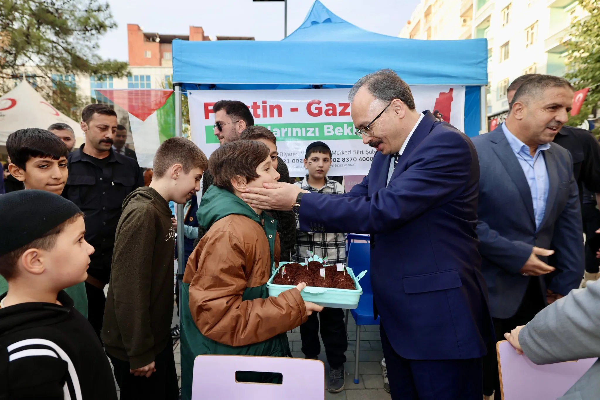 Siirt Valisi ve Belediye Başkan Vekili Dr. Kemal Kızılkaya ile eşi Hanımefendi Nurten Kızılkaya, İl Müftülüğü ve Türkiye Diyanet Vakfı (TDV) Siirt Şubesi tarafından Gazze yararına düzenlenen “Hayır Çarşısı”nı ziyaret ederek desteklerini iletti.