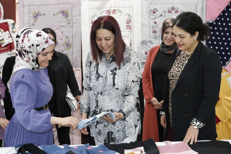 Kursiyerlerle bir süre sohbet eden Hacıbektaşoğlu, Halk eğitim merkezlerinin kadınlarımıza önemli fırsatlar sunduğuna dikkat çekerek, kurslarda büyük bir emek ve sabır göstererek çok değerli eserler ortaya çıkaran tüm kursiyerleri ve usta öğreticileri kutladı.