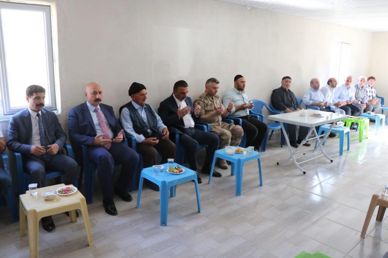 Vali Hacıbektaşoğlu, Köy Taziye Evi’nde şehit ailesine, yakınlarına ve köy halkına başsağlığı dileklerini iletti.