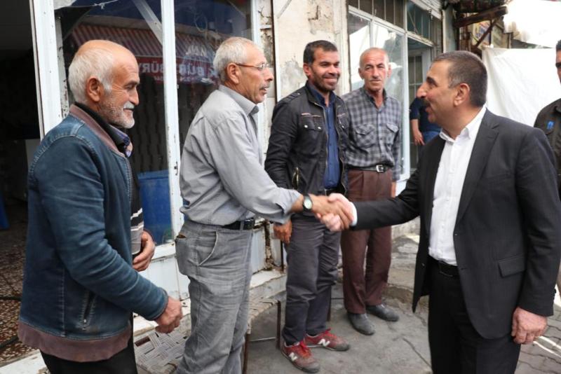 Vali Hacıbektaşoğlu, beraberinde İl Jandarma Komutanı Tuğgeneral Emrullah Büyük, İl Emniyet Müdürü Hakan Yıldırımoğlu ve Belediye Başkan Yardımcısı Abdulmecit İlhan ile birlikte esnaf ve vatandaşlarla bir araya geldi.