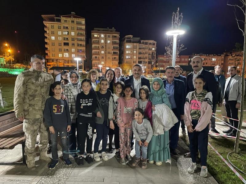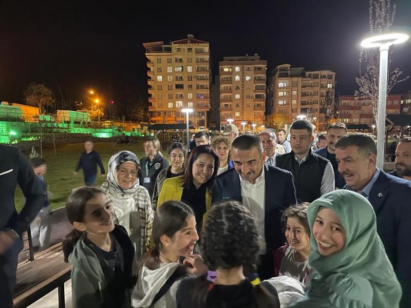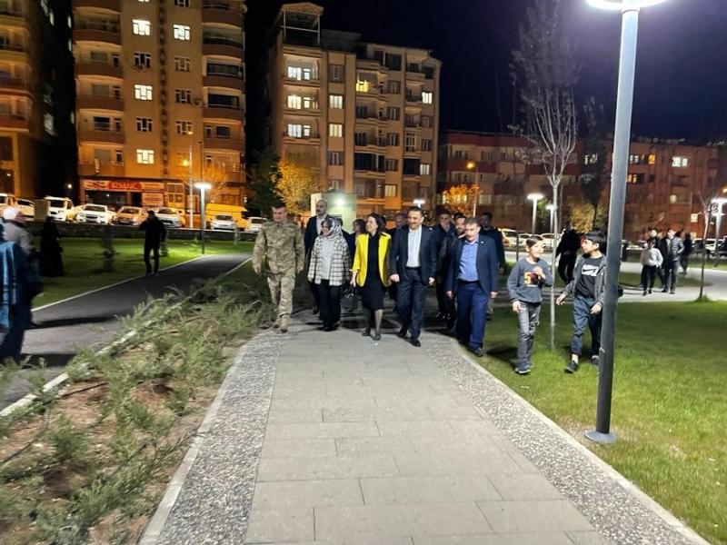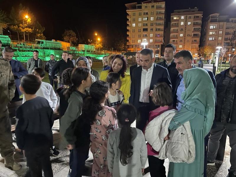 Vali Hacıbektaşoğlu ve eşi Güney Hacıbektaşoğlu, Millet bahçesini gezerek, vatandaşlarla bir araya geldi.