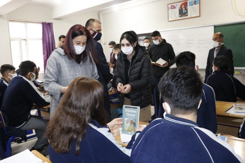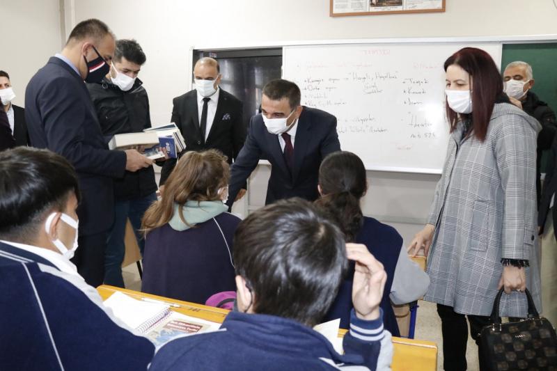 Vali Hacıbektaşoğlu daha sonra okuldaki sınıfları gezerek öğrencilerle bir süre sohbet etti. Kendilerine kitap hediye etti.