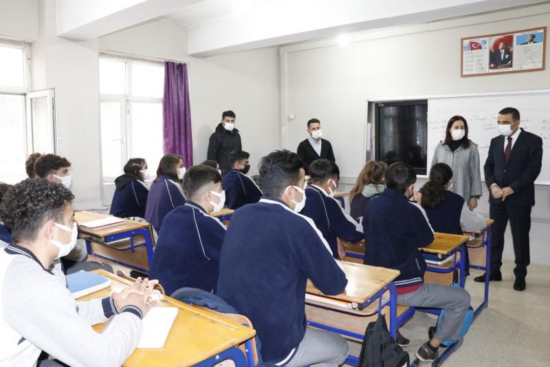 Okul bahçesinde İl Milli Eğitim Müdürü Deniz Edip, Okul Müdürü Yusuf Turhan ve öğrenciler tarafından karşılanan Vali Hacıbektaşoğlu, kendisine çiçek takdim eden öğrencilerle bir süre sohbet etti.