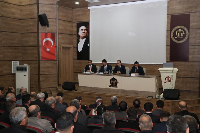 Toplantıya, Vali Yardımcıları, Ömer Faruk Gökçe, Şeyma Aktaş, Semiz, Birkan Tatlısöz, Eruh Kaymakamı İbrahim Engin Şenay, Tillo Kaymakamı Mehmet Ali Semiz, İl Özel İdaresi Genel Sekreteri Hifzullah Canpolat, yatırımcı kurum müdürleri ve muhtarlar katıldı.