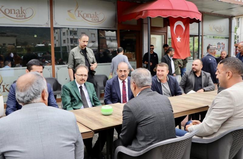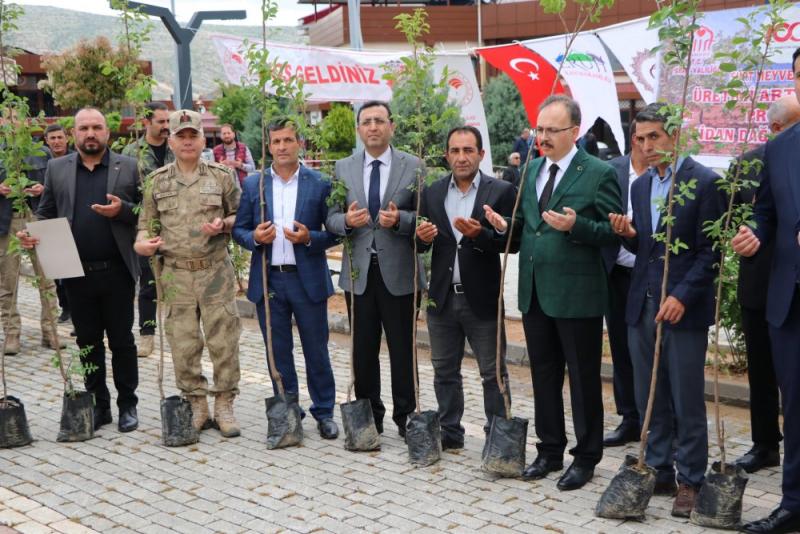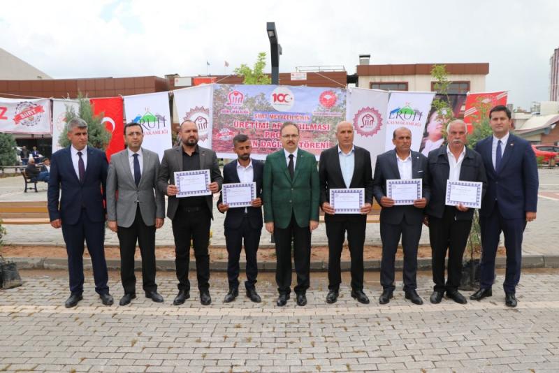 Vali Dr. Kemal Kızılkaya, "Siirt Meyveciliğinin Geliştirilmesi Projesi” kapsamında Eruh ilçemizde düzenlenen; 15 bin adet Trabzon Cennet Hurması Fidan Dağıtım Töreni'ne Katıldı. Üreticilere, çiftçilere hayırlı ve bereketli bir sezon geçirmeleri temennisinde bulunan Vali Kızılkaya, Tarımsal üretimin artırılması noktasında üreticilerimizi ve çiftçilerimizi her zaman destekleyeceğiz" Siirt’in tarım kenti olduğunu belirten Vali Kızılkaya, huzur ve güven ikliminde, ilimizi, ilçelerimizi bulunduğu yerden daha ileriye götürmek, hizmetin en güzeline layık olan değerli vatandaşlarımıza daha iyi bir yaşam kalitesi sunacak ortamı hazırlamak ve vatandaşlarımızın yaşam standartlarını daha da yükseltmek için var gücümüzle çalışamaya devam edeceğiz" VALİ KIZILKAYA;ESNAF ZİYARETİNDE BULUNDU Vali Dr. Kemal Kızılkaya, Eruh ilçe ziyaret programı kapsamında, Eruh 15 Temmuz Demokrasi Meydanında bulunan esnafları ziyaret ederek, talepleri dinledi. Vatandaşlarla da hasbihal eden Vali Kızılkaya, ilçe esnafına bol ve bereketli kazançlar diledi. Esnaf ziyaretine Eruh Kaymakamı İbrahim Engin Şenay, İl Jandarma Alay Komutanı Tuğgeneral Emrullah Büyük, İl Emniyet Müdürü Necmettin Öztürk ve Eruh Belediye Başkanı Cevher Çiftçi eşlik etti.