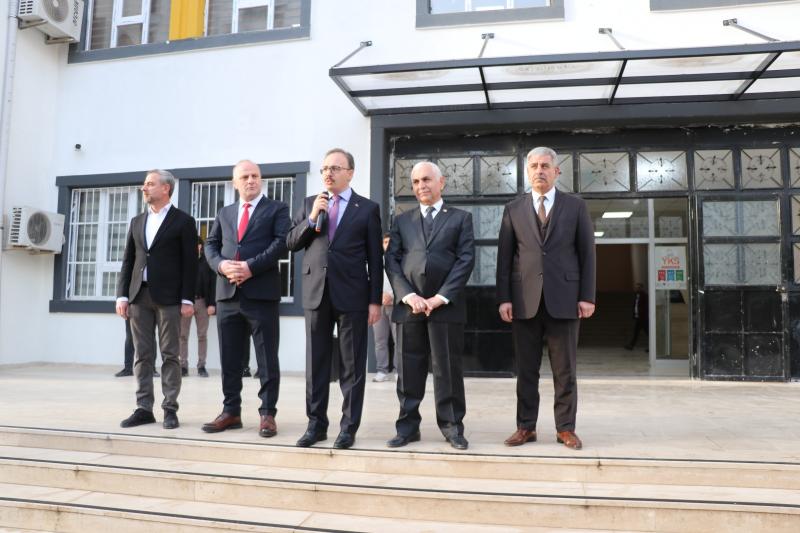 Yeni binada öğretmen ve öğrencilerle bir araya gelen Vali Kızılkaya, fiziki anlamda modern bir eğitim yuvasına kavuşan öğrenci ve öğretmenlerimize yeni binalarının hayırlı olmasını diledi.