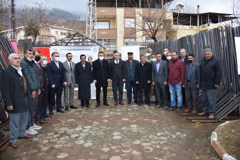 Vali Hacıbektaşoğlu ve beraberindeki heyet daha sonra GAP idaresi tarafından finanse edilen ‘Yüksek Telli Bağ Sistemi Projesi’ kapsamında 18 çiftçiye dağıtılacak 2500 adet demir direklerin dağıtım törenine katıldı.