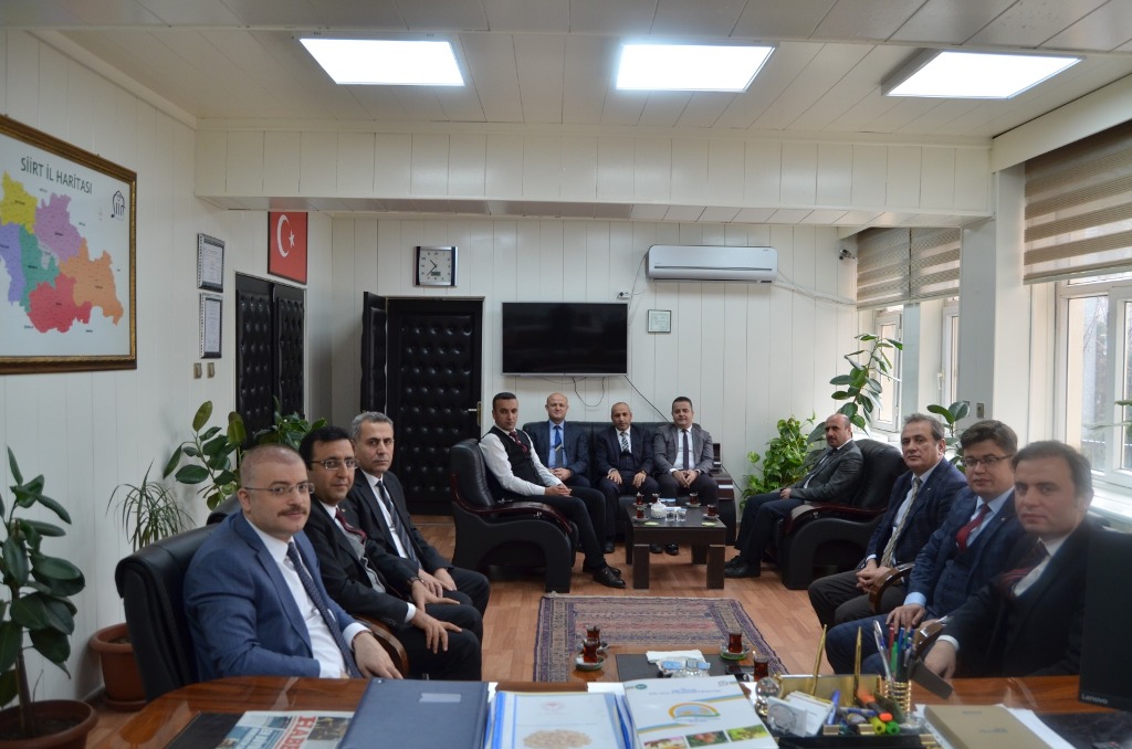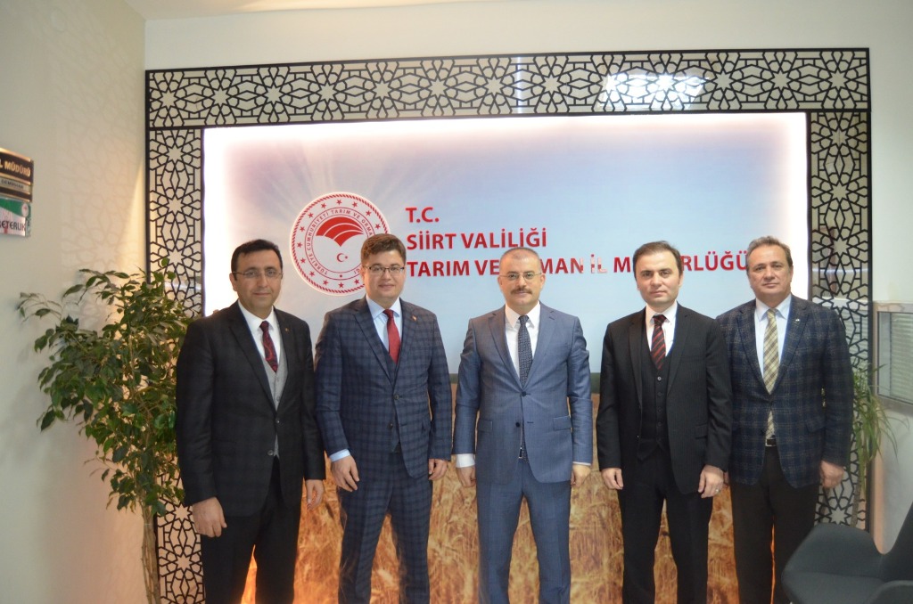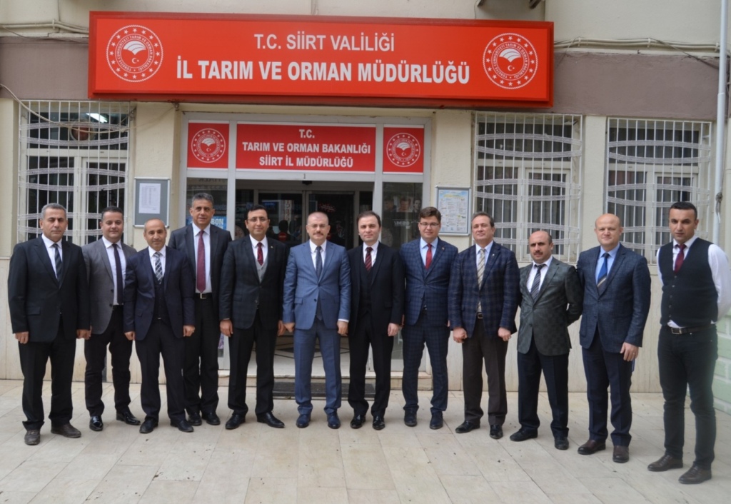 Vali Yardımcıları Zihni Yıldızhan, Vali Yardımcısı Lokman Düzgün ve Vali Yardımcısı Selim Erkovan, Siirt Tarım ve Orman Müdürü Ergün Demirhan’ı ziyaret etti. İl Tarım ve Orman Müdürlüğü'nü ziyaret eden Vali Yardımcılarını, Tarım ve Orman İl Müdürü Ergün Demirhan tarafından karşılandı. Tarım ve Orman İl Müdürlüğünden sorumlu Vali Yardımcısı Zihni Yıldızhan'ın İl Müdürlüğü şube müdürlüklerinde ve birimlerde yaptığı denetimden sonra, Vali Yardımcısı Zihni Yıldızhan, Vali Yardımcısı Lokman Düzgün ve Vali Yardımcısı Selim Erkovan Siirt Tarım ve Orman İl Müdürlüğünü ziyaret ederek İl Müdürü Ergün Demirhan ve kurumun idarecilerinden Siirt tarım ve hayvancılık konularında bilgi aldılar. Vali Yardımcıları , İl Müdürü Ergün Demirhan’a çalışmalarında başarılar dileyerek kurumdan ayrıldı.