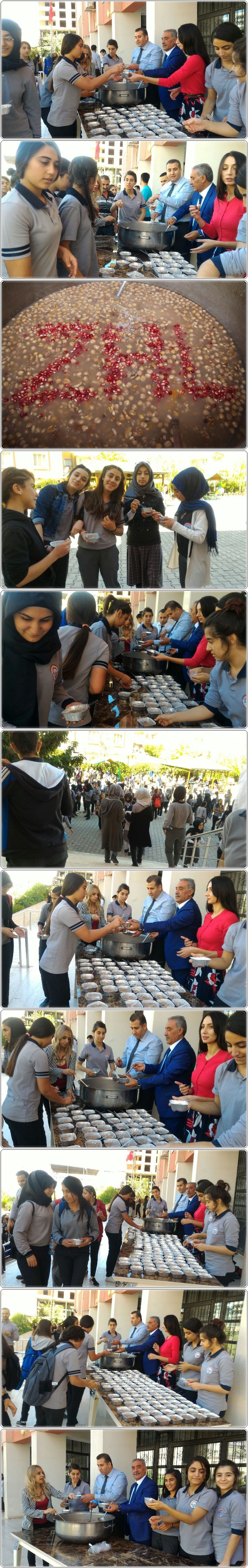 Daha sonra hazırlanan 500 kişilik aşure, okul müdürü idris Yolbaş, Zübeyde Hanım Anadolu Teknik Meslek Lisesi Onursal Başkanı Misbah Yılmaz öğrenci, öğretmenler ve vatandaşlara dağıtıldı.